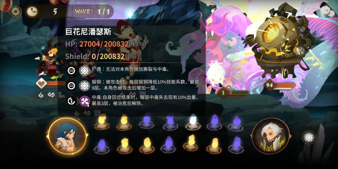 17-7,这里利用了一个bug,豹姐这个尸偶状态是符文石碎裂之后给的,用卢恩参谋,在符文石碎裂之前黑兔弟开局俩白一丢出去,就能给豹姐上中毒。在豹姐行动之前,即使之后豹姐身上有尸偶状态,身上还会有黑兔弟给的3层中毒,然后依旧黯月俩黑四斩杀