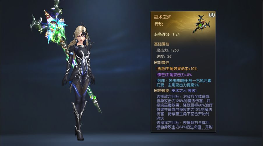 选择敌方目标:对敌方全体造成自身攻击力128%的魔法伤害,并感染巫毒效果;巫毒状态下目标降低60%治疗效果并造成自身攻击力10%的魔法伤害,持续至主角下回合开始时消失