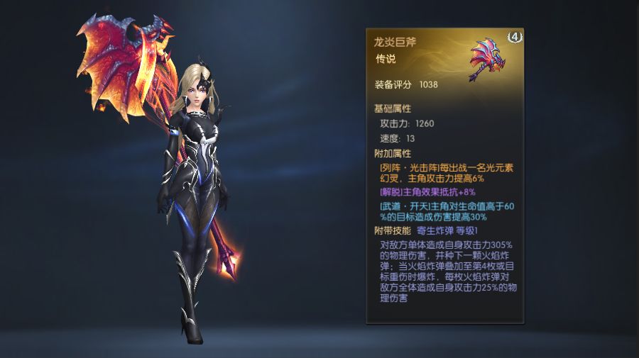对敌方单体造成自身攻击力305%的物理伤害,并种下一颗火焰炸弹;当火焰炸弹叠加至第4枚或目标死亡时爆炸,每枚火焰炸弹对敌方全体造成自身攻击力25%的物理伤害
