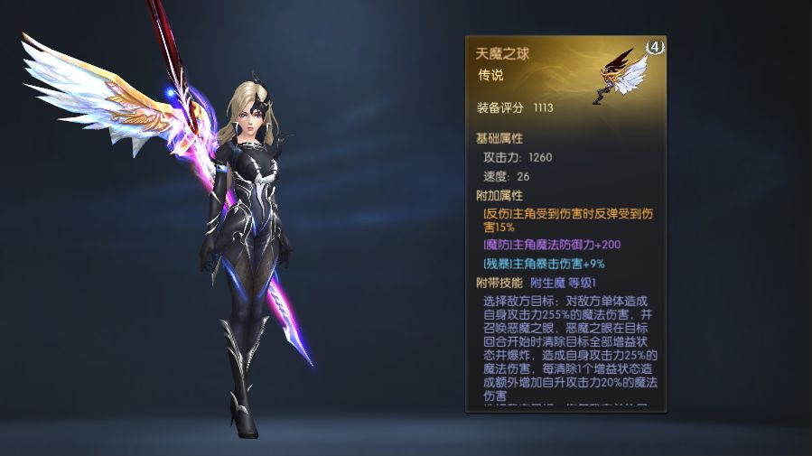 选择敌方目标:对敌方单体造成自身攻击力255%的魔法伤害,并召唤恶魔之眼,恶魔之眼在目标回合开始时清除目标全部增益状态并爆炸,造成自身攻击力25%的魔法伤害,每清除1个增益状态造成额外增加自升攻击力20%的魔法伤害
