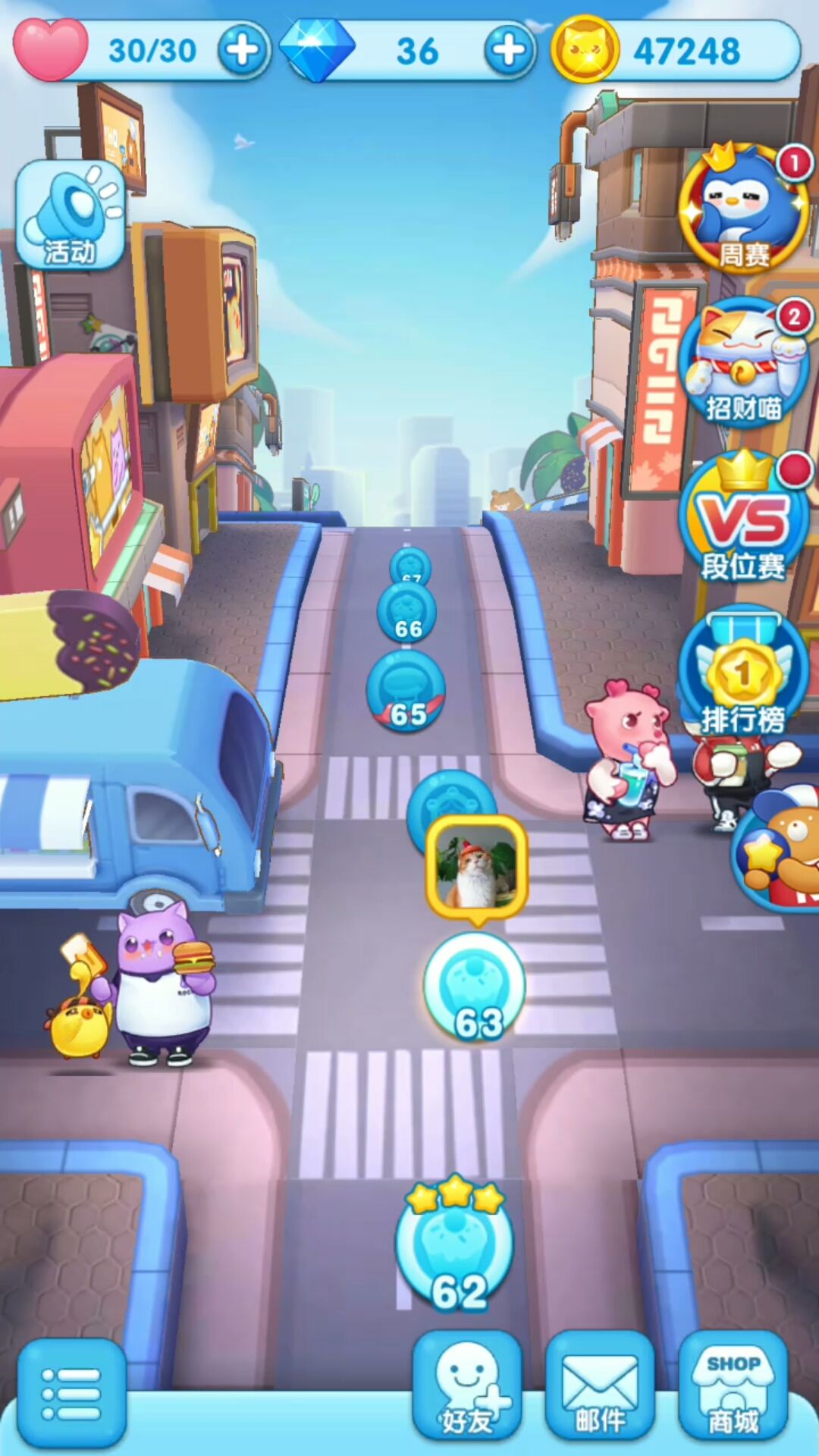 如果说《消除者联盟》现在的障碍与难度增加速度,拿到几年前,消除类游戏刚刚出现那会儿,一定会被大家吐槽难度太大。在70关内就完成了从简单障碍到高级障碍的多级连跳。比如说,才刚刚过60关,其中一关的障碍已经是收集+消除障碍+打地鼠+障碍移动了。