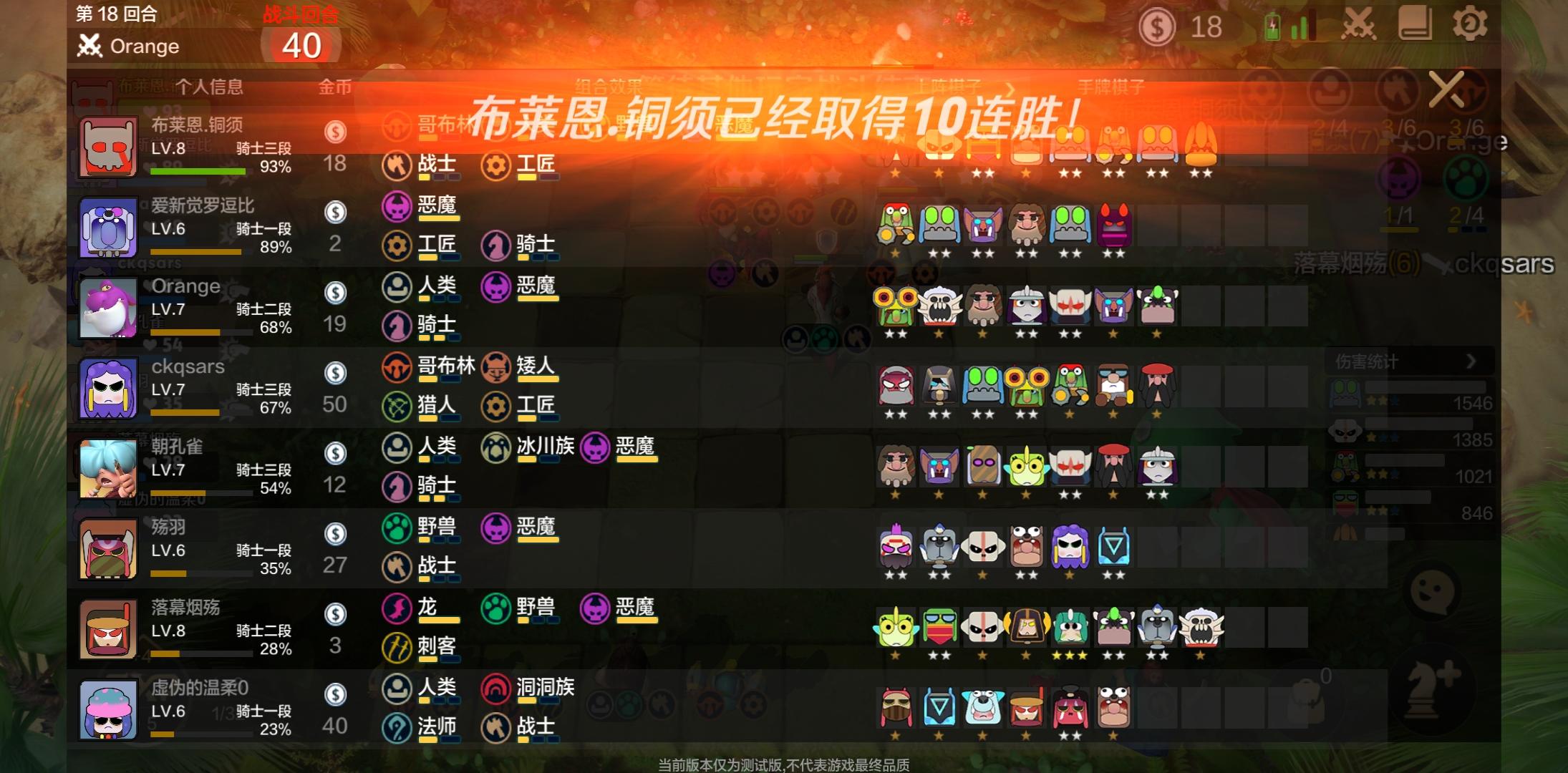 之前一直连胜来着,后期有个猎人大哥太强了,主要是前排潮汐船长有控制后面五个射手两个角落藏好