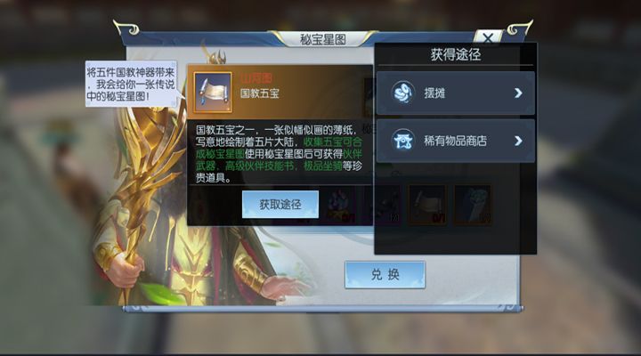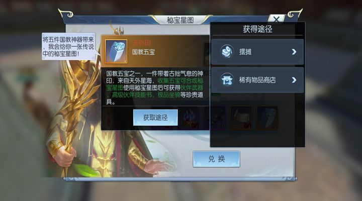 五位国教巨头,各自拥有着一件国教重宝,当有敌人来犯的时候,这五件重宝更是可以组成离宫大阵,相信没有什么敌人是可以抵挡的住大阵的威力的。游戏中这五件重宝更是可以合成秘星宝图,挖掘出各种稀有宝藏,少侠们心动了么,赶快来合成宝图,挖取属于自己的宝藏吧。