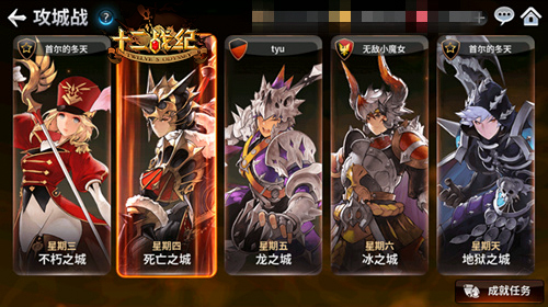 玩家到了7级之后且加入公会就会开启攻城战玩法。每天攻城战的城池和boss都有所不同,每个玩家代表公会出战,为公会赢取分数。公会所有玩家赢取的分数决定本公会的排名和奖励!