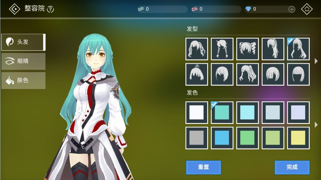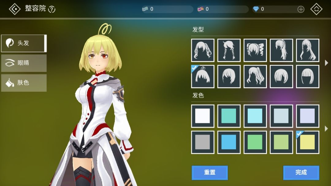 在整容界面,可以重新选择人物的发型、发色、眼型、瞳色以及肤色。