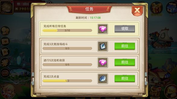 在游戏底部导航栏有个“任务”按钮,顾名思义,其中包含了每日的各种任务,只要完成相应的任务即可领取奖励!