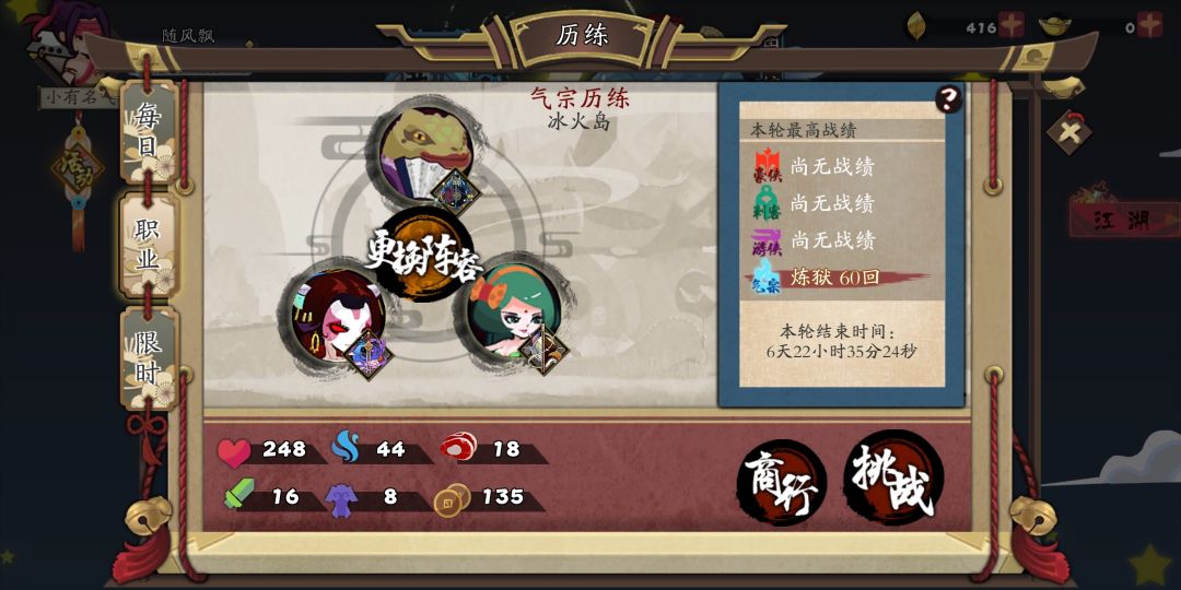 血量高是因为带了三套绿化形加了108血(相当于初始人物初始血量仅为140),其中康夫人带的是灵儿的绿化形,而这些化形第一周打了困难历练就能做出来,