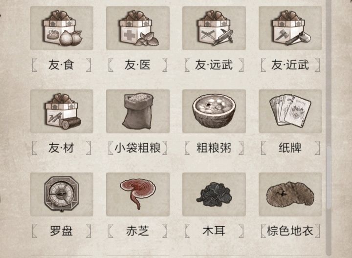 绷带:药盒制作,崖洞摸尸,开启友情包医概率获得。主要用来回复外伤。