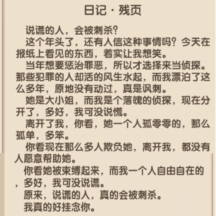 游历于泽纳恩群岛的艺术家艾鲍恩德在海港城镇托马特演奏歌曲时,无意间捡到一篇日记残页,于是有感而发,根据此日记内容创下歌曲,幽柔婉转的歌声徜徉在城镇海滨,落魄侦探与一城之主悬殊的身份地位,少不经事的鲁莽行径,往昔动魄惊心冒险生活与同佩吉争吵打闹的画面纷纷萦绕心头,叹现如今,俱往矣。原来我,真的好挂念你...