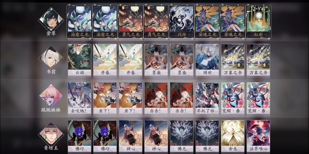 (1)书翁觉醒。这套和过牌流有三个式神都是一样的,过牌速度也很快,可不可以带张书翁觉醒打双核?我一开始也是这样想的,结果打了20盘下来没有一局是靠书翁觉醒赢的,基本都是在牌库剩下6张到10张的时候解决战斗,所以我又把书翁觉醒去掉了。