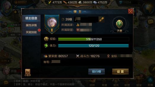 领主篇主要分为:领主天赋,领主信息。