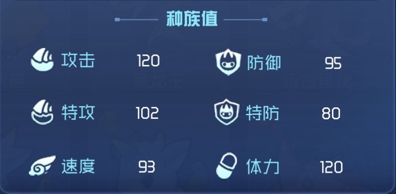 种族值(主技能攻击+防御+特防+速度+体力):