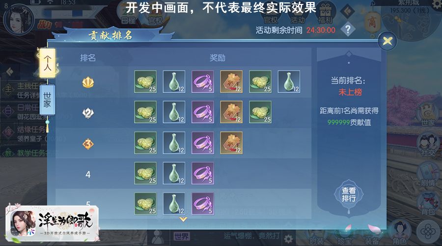在活动开启后,阁下可在活动中免费获得海量奖励,包括红色装备图纸,宝石等等,并且活动将对世家进行贡献排名,基于贡献值的不同登上榜单,活动结束后所有榜单世家成员还将通过邮件额外获得海量奖励,让玩家在体验游戏时不仅能时刻感受新玩法的乐趣,更可以同时赢取多重惊喜豪礼!