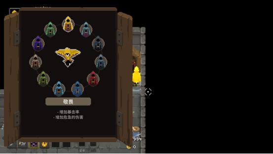 开局时玩家可以在传送阵附近的四个NPC及衣柜旁的NPC处,花费混沌宝石获得一定的增益。
