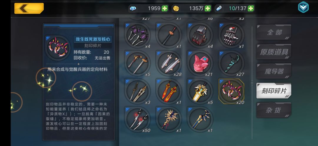 总不能说我4发能抽齐两把镰刀然后武器觉醒后还刷多20个碎片吧