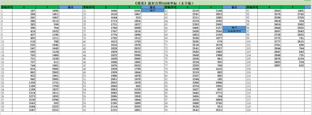 坐标都是大佬们统计的,我这里转发帮助刚入坑萌新,希望大家互帮互助,让更多的人玩,遇到困难我们都要微笑的面对它们,奥莉给