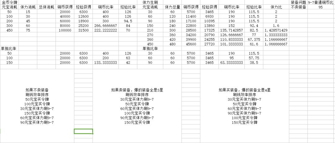 最后说一下,记得刷普通,噩梦和普通的基础铜币比和经验比相同,而且主要靠卖装备挣钱。附表格文件,有需自取。