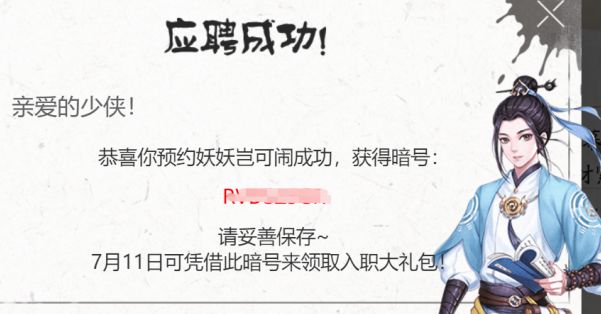 A:如果少侠之前在《妖妖岂可闹》预约站预约过,那应该已经获得了一个预约暗号哦~在《妖妖岂可闹》右下角兑奖页面输入预约时收到的“预约暗号”,即可获得无限存档位和初之心*20