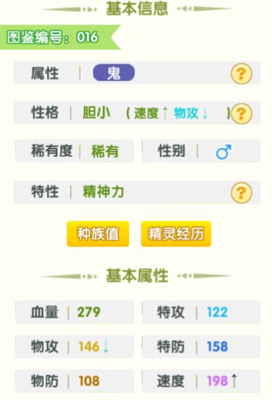 阴影鬼的种族分配为物攻,推荐定位是消耗,可以看到速度是非常厉害的,在精灵对决中往往出手速度很大程度上改变了战局。