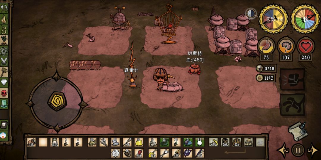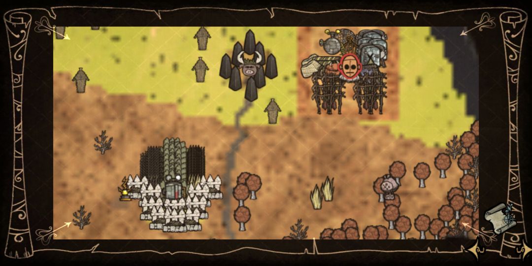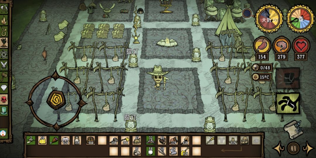 1个个地皮于另一个地皮的间隔是一个地皮,然后在挖出来的地皮上放放置各种东西(我这里偷懒了,本来要把晾肉架和农场放在一起的)在中间放灭火器刚好能顾及各个格子
