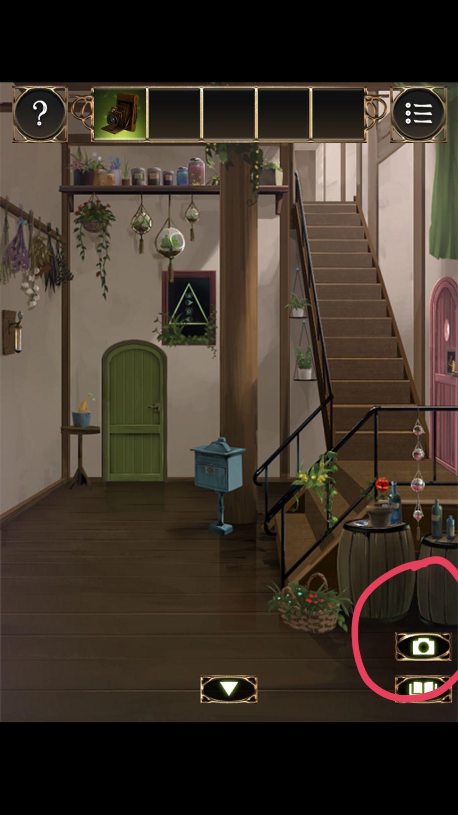 进去后是右上上左上右,拿到一个钥匙,去开粉色房间挂在墙上的包包,拿到照相机
