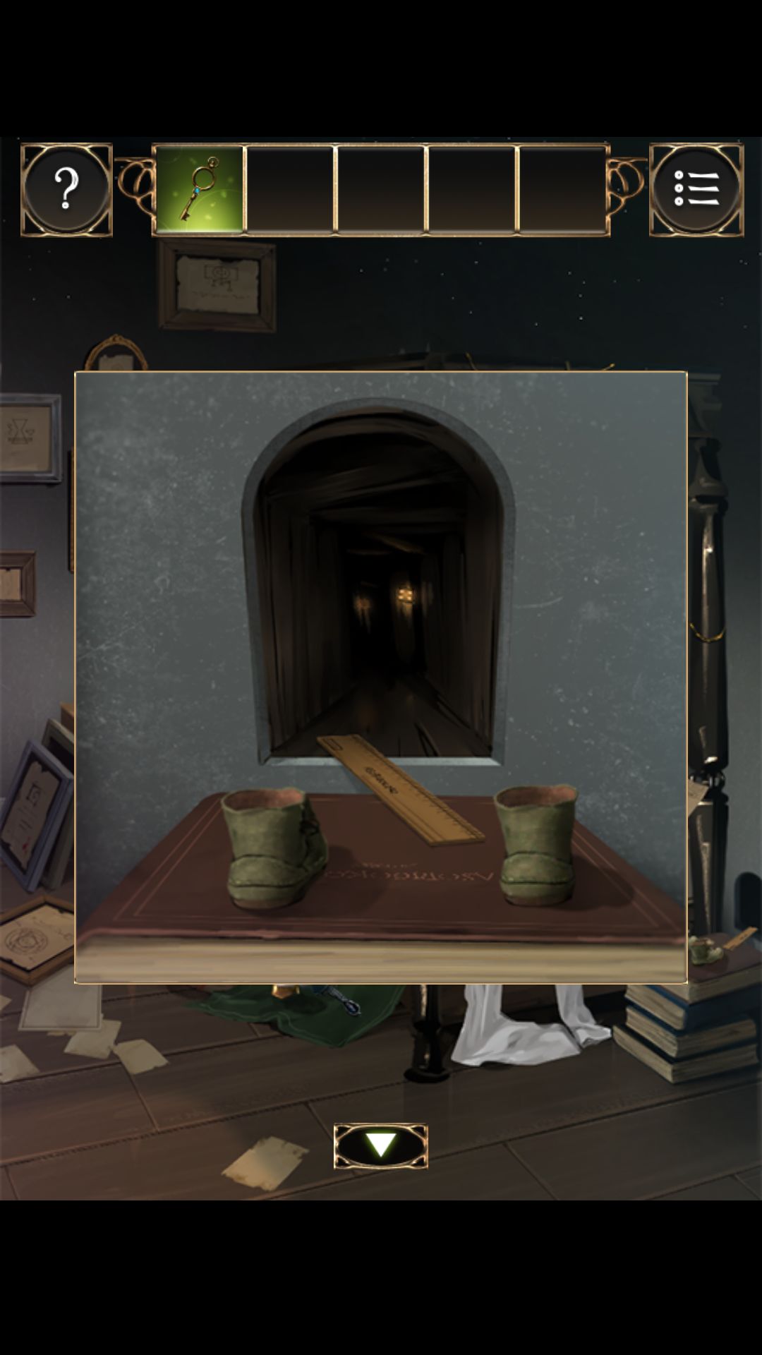 第八关在粉色门里木箱上找到一个鞋子,然后放在