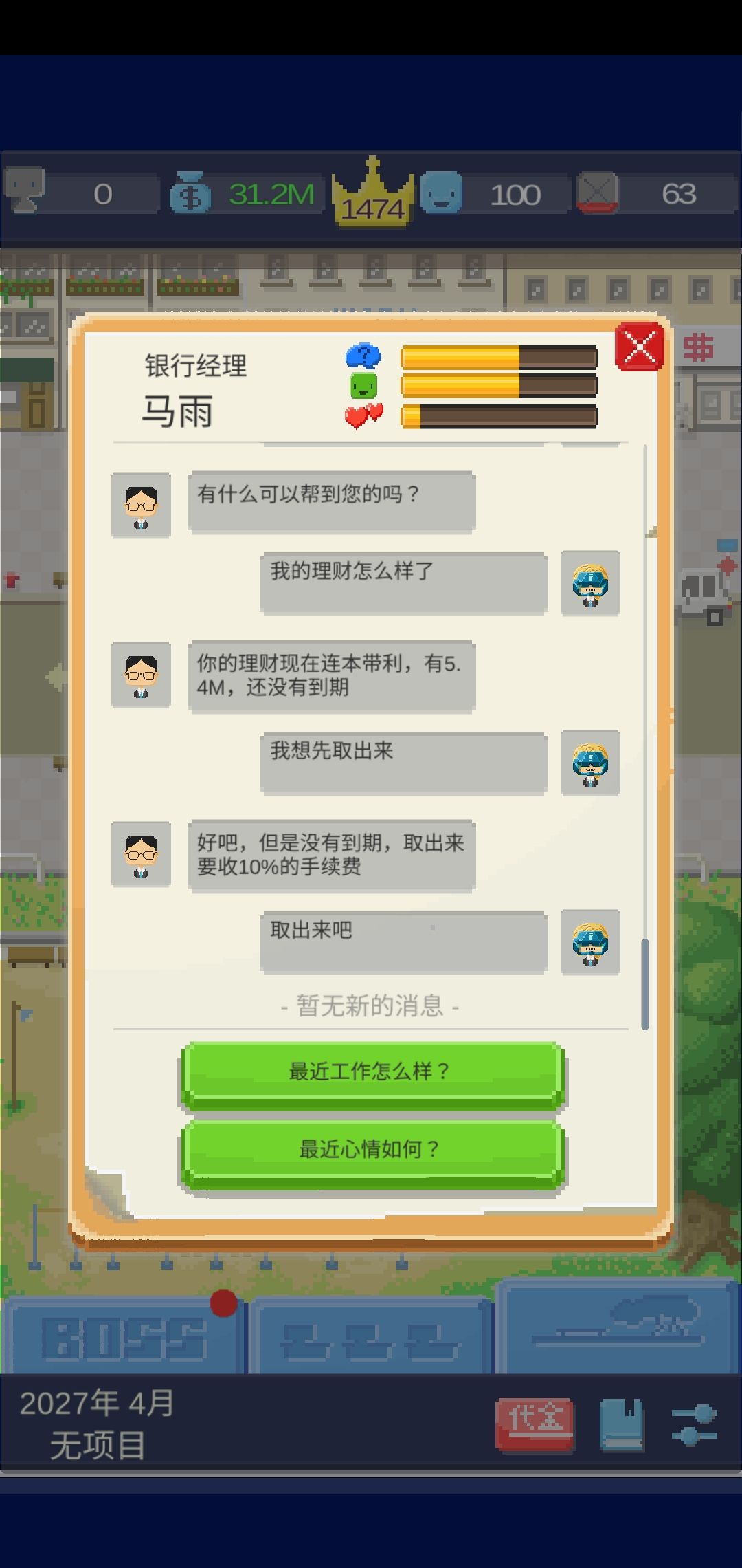 这边是点开对话框先不选择【我想先取出来】在boss栏点问号取钱之后可以在这边再取一次总的来说这个bug可以取两次钱