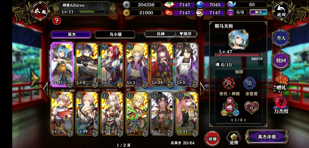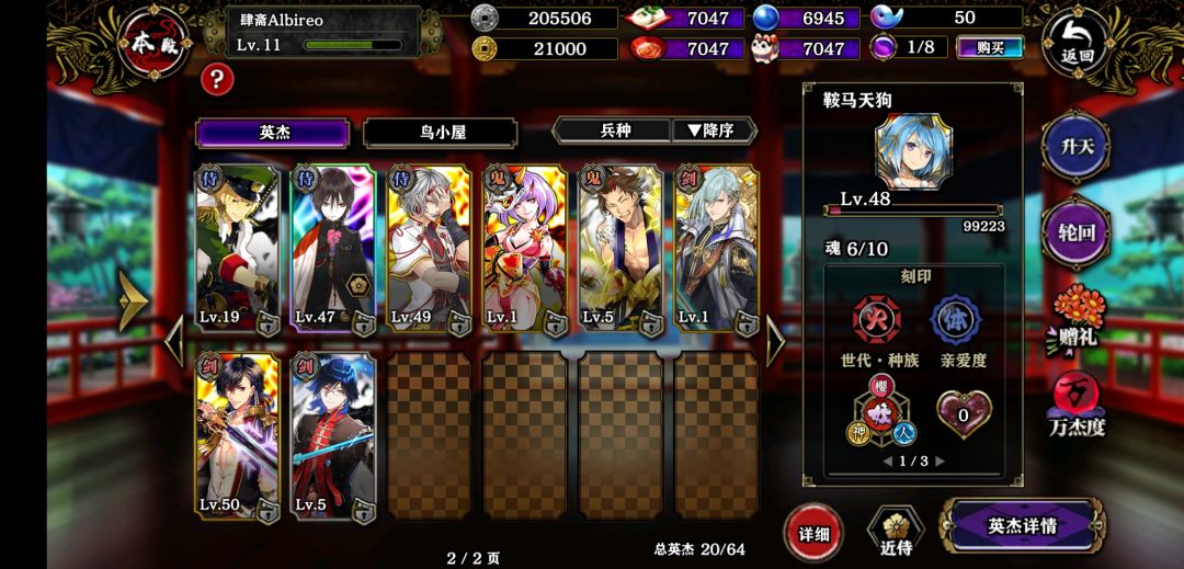 目前自然还只有一个开局送的桃太郎。