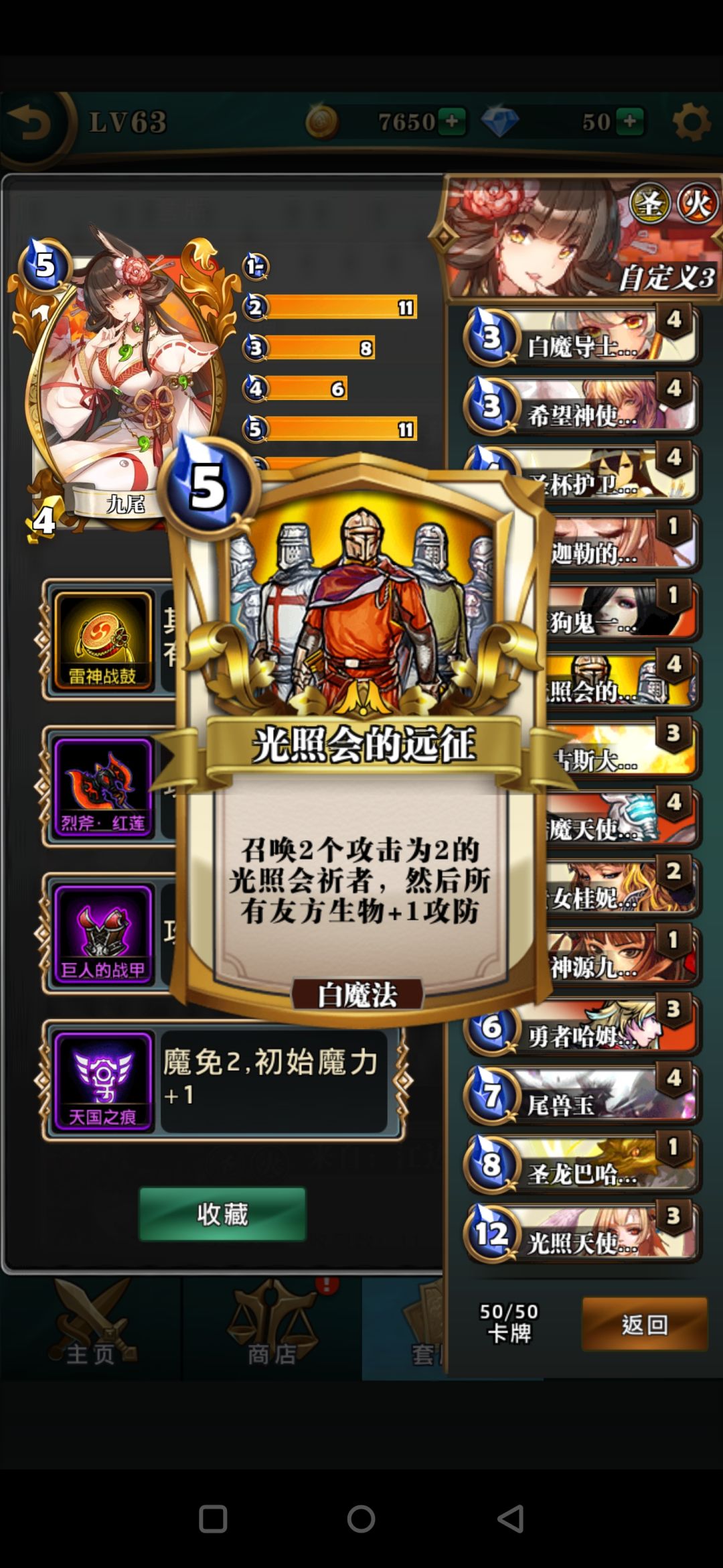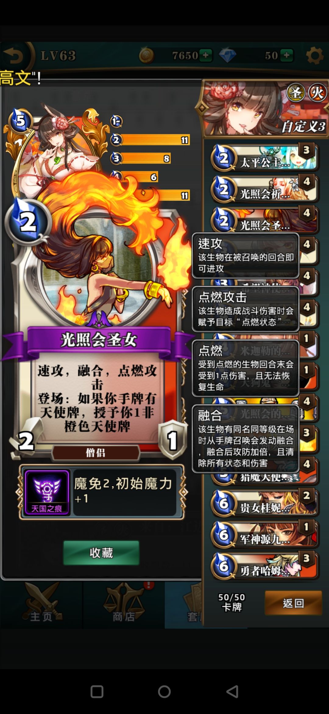 这一套核心思路就在于源源不断的生物压力,放弃了影分身这种后续战力不足的卡,以确保持续压力的方式来对抗解牌太多的蓝黑和黑白,前期如果有米迦勒在手,那么和火女,希望天使的配合会相当顺利。
