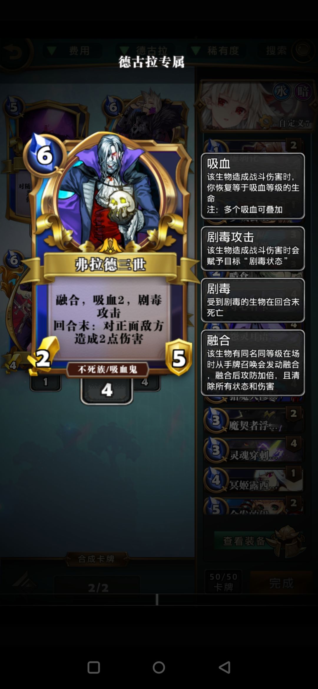 首先是组卡思路上,因为目前强势职业主要就是以下三位,德古拉,莉莉丝,路西法,莉莉丝的特性是冲锋卡组非常之多,可以在前期迅速打出爆发干掉对手,而德古拉和路西法的共性是都带了大量黑色低费控制法术,因此我们为了保证稳定上分,需要充盈自己的低费曲线来消耗对手的生物或者解牌,然后找机会使出组合拳打败对手。