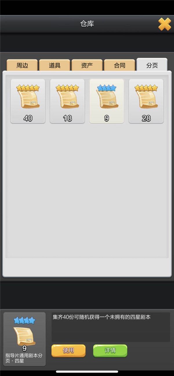 通过介绍我们可以看到,当集齐40份分页碎片后,玩家朋友可以点击使用并随机获得一个未拥有的四星剧本。