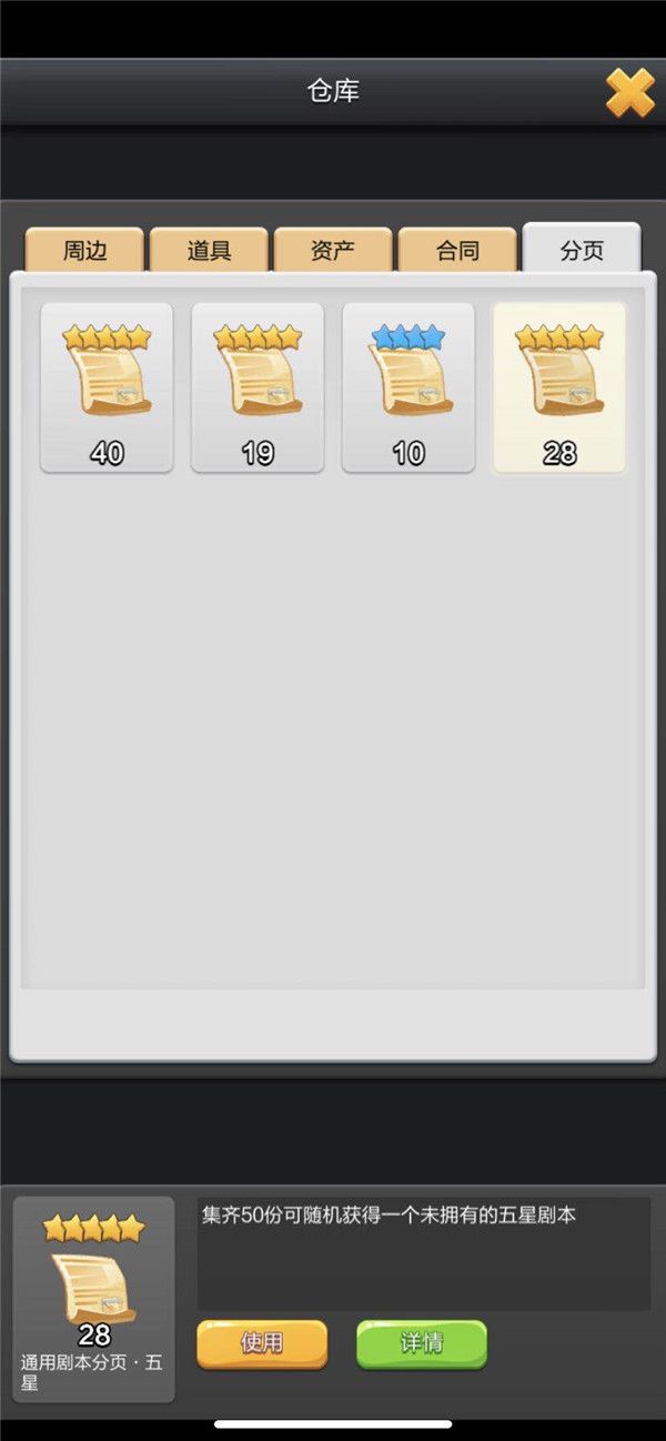 通过介绍我们可以看到,当集齐50份分页碎片后,玩家朋友可以点击使用并随机获得一个未拥有的五星剧本。