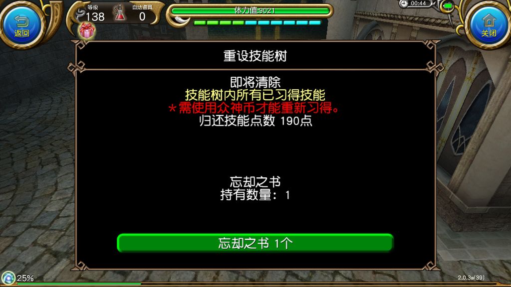 138级,190技能点,若点满,只需要: