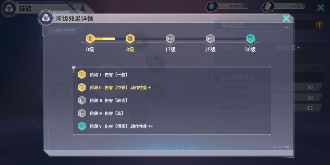 1.以基础技能加一为例:可以打开角色-技能-配置(基础技能就是平a),在右上角有个叹号点开可以看到你的技能阶级,技能阶级需要你该技能镶嵌的芯片等级之和达到要求才能达到,具体效果我也是小白不懂,另外,分支技能的阶级貌似隐藏了?