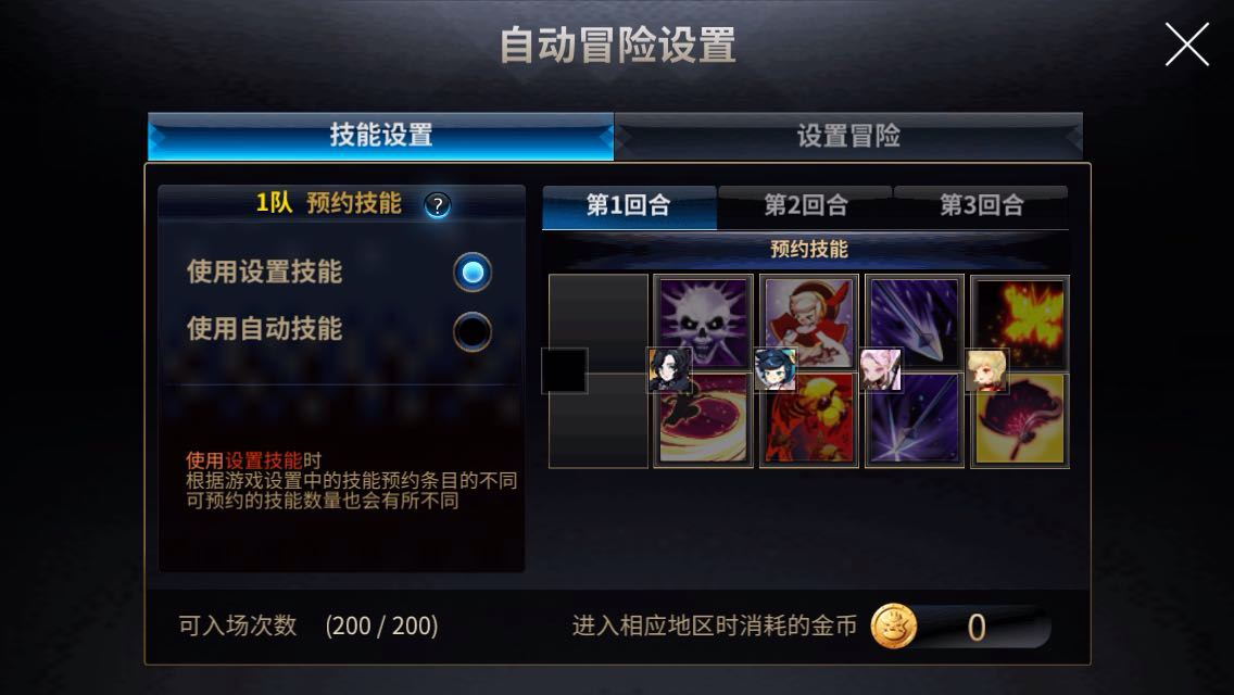 在【技能设置】选项中,可以设置队伍使用技能的顺序,骑士可以设置自定义的技能释放顺序,最多可设置3个,也可以设置自动技能。