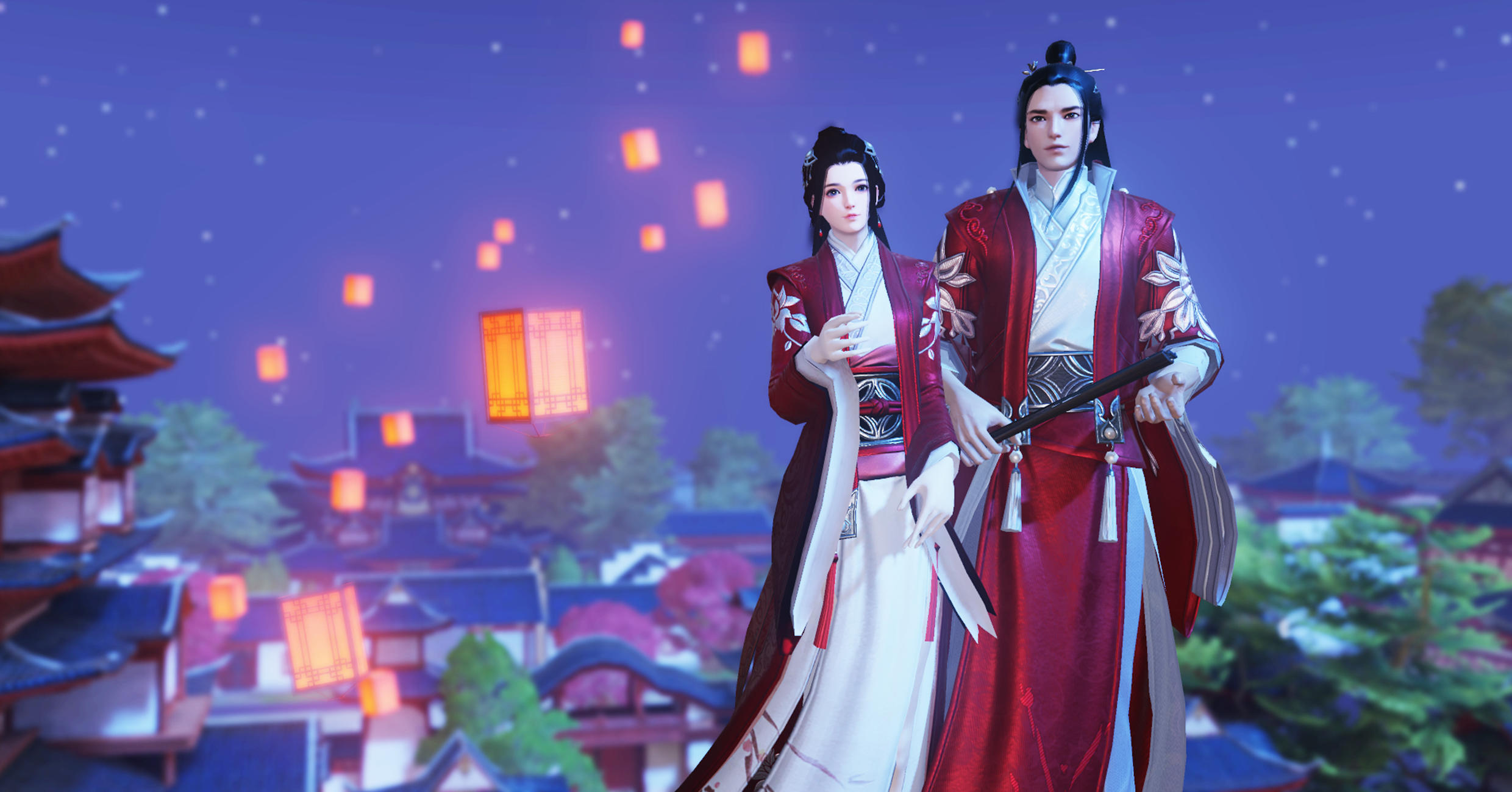 这时金陵街上窜出一抹鲜艳的红,原来小女侠和小少侠也穿上了朱颜辞!
