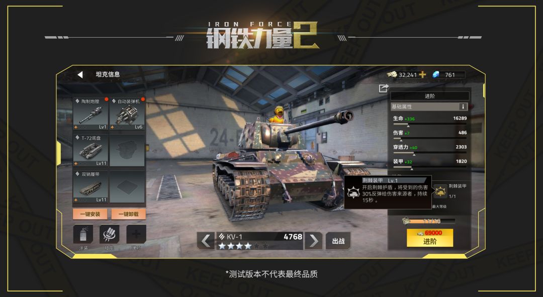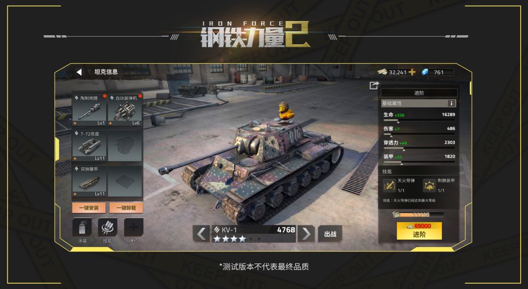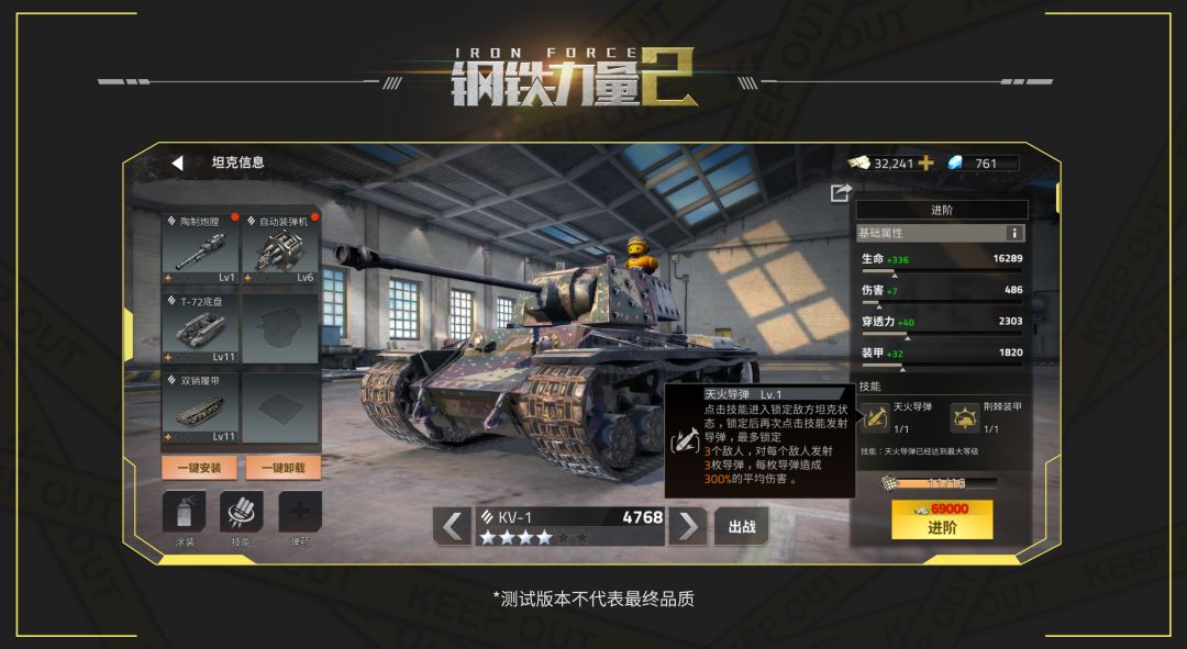 本次给大家带来的坦克档案,是新手的进阶款重坦KV-1,霸气的外形让它如下山猛虎一样,充满了威慑力。作为一款重坦,KV-1的技能没有太特殊的地方,可以说是新手款的一个小升级,在大家新手时期还是很好用的一款标准重坦。