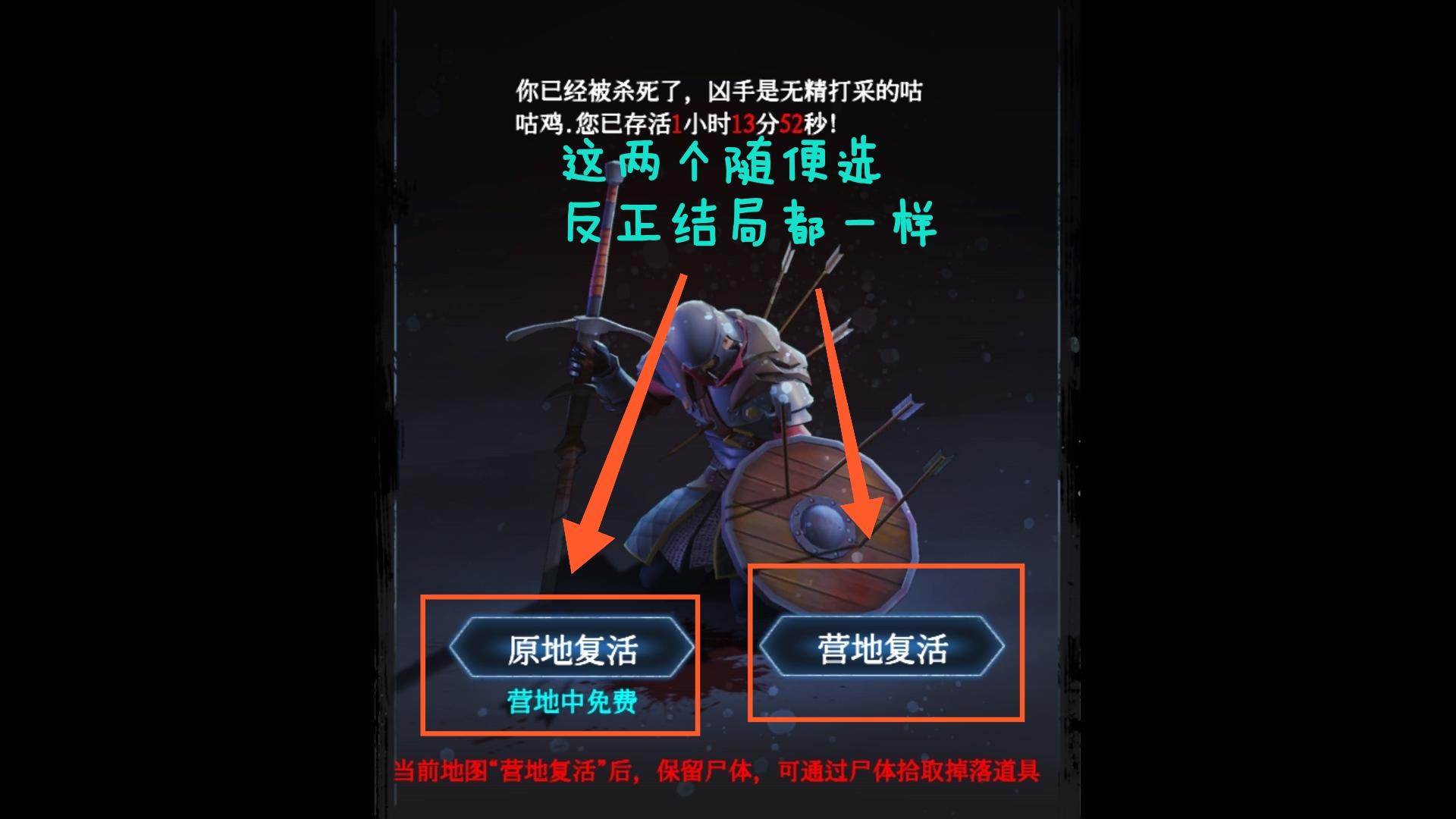 用了之后没有任何buff加成直接立即死亡,复活方式随便选,都一样在营地入口复活