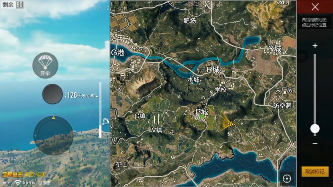 如果玩家来到P城,却发现此时的P城让你完全无法招架,P城西南方向和东北方向的两个小建筑群就是你的安全去处,选择靠近安全区圆心的方向出发吧。只要安全跑过田野的开阔区并确定没有被人捷足先登,之后的大段时间基本就安全了。