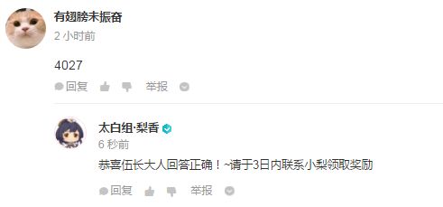 活动时间内最接近答案或首个猜对的伍长将获得立牌“云”1个↓↓↓