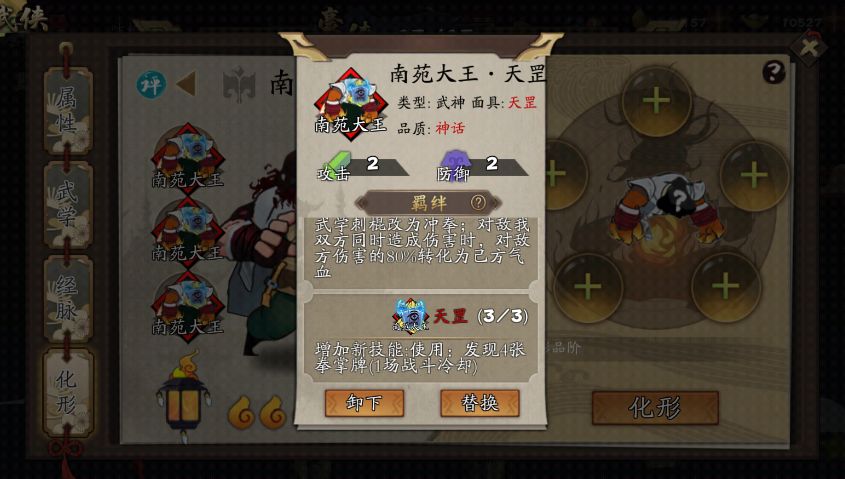 太极传人:天机橙化形,专属卡牌升级,全体眩晕效果保命。