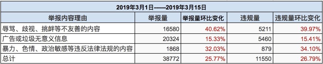 三月上半月社区总举报量为38772条,同比增长25.77%;实际处理量11550条,同比增长26.79%,举报成功率29.8%。同比于上期,举报量均有明显增长,“辱骂、歧视、挑衅等不友善的内容”类目增长量最为明显,随着气温回升,暴躁用户的数量似乎也随之增多,小管家希望各位Taper能文明措辞,友好交流。