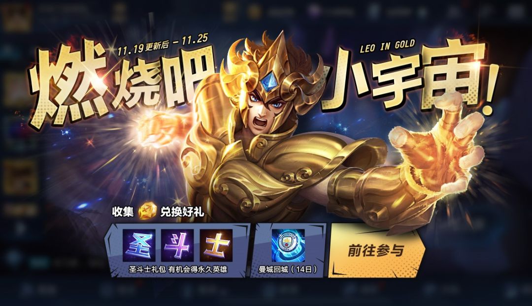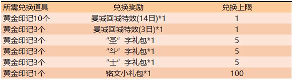完成游戏内任务,收集黄金印记可兑换曼城回城特效体验卡,还有机会抽取永久英雄。