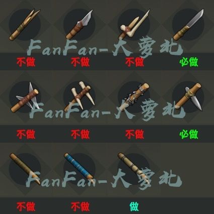 仅建议做“刀”,若急不可耐,抑或脸黑,可以选择做略次之的骨质矛尖。其他的不要考虑。