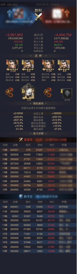 周泰的出现,在增加了专业盾的制作难度之余,也为专业盾的选手提供了一个小福利,就是出两队盾,要知道对于很多龙脉高的盟友,就算是扣除白虎的54.5%生命加成,76.30%防御加成,属性上也是不逊色于二线盾的。(如上图)