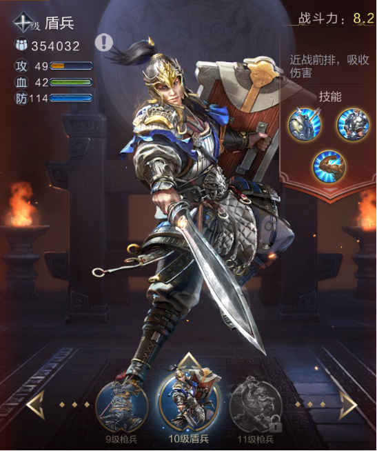 除去属性和减伤技能让他擅长承担伤害外,战斗机制让他永远的站在第一排,也让盾兵成为了一个生而就要承担伤害的兵种。