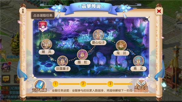 在徜徉于云梦泽的过程中,少侠也可以通过全服任务云梦书来了解嘲风、珍露童子、蜃蛇、菱心仙子、鬼剑五大全新萌宠背后的故事。在嘲风的指引下,少侠将经历一次为期三天的冒险之旅,并在完成后解锁新等级上限。而在云梦书任务进度全满之后,终极之战也将开启,届时玩家将挑战难度战斗青灵玄女,重温这一游戏经典BOSS的魅力。