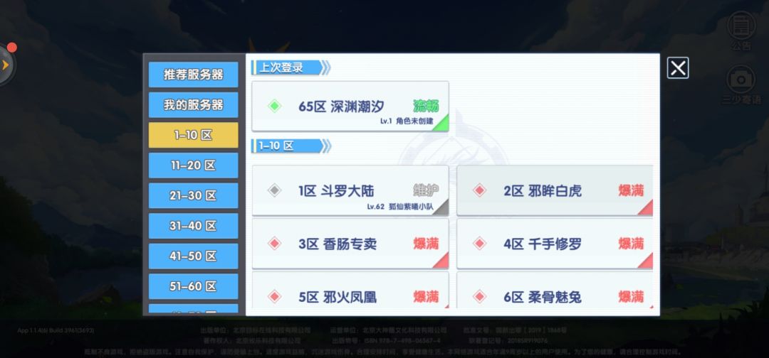 ?别的都正常,就一区维护?