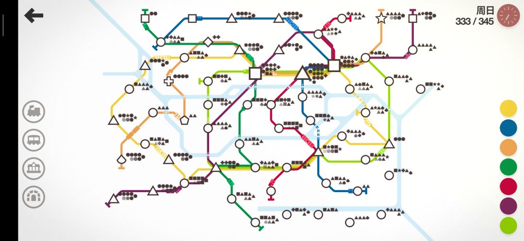 难度评定:8.5/10(地形因素:2.5/2.5;站点数量2/2.5;线路数量1.5/2.5;站点排布2.5/2.5;)