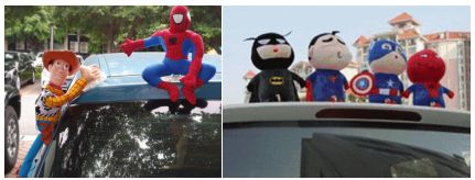 也许,你曾在马路上见过车顶上装饰着蜘蛛侠、蜡笔小新等造型各异的玩偶,觉得贼好玩儿。不过,车顶装玩偶是违法的行为,被发现是要被罚款扣分的哦。